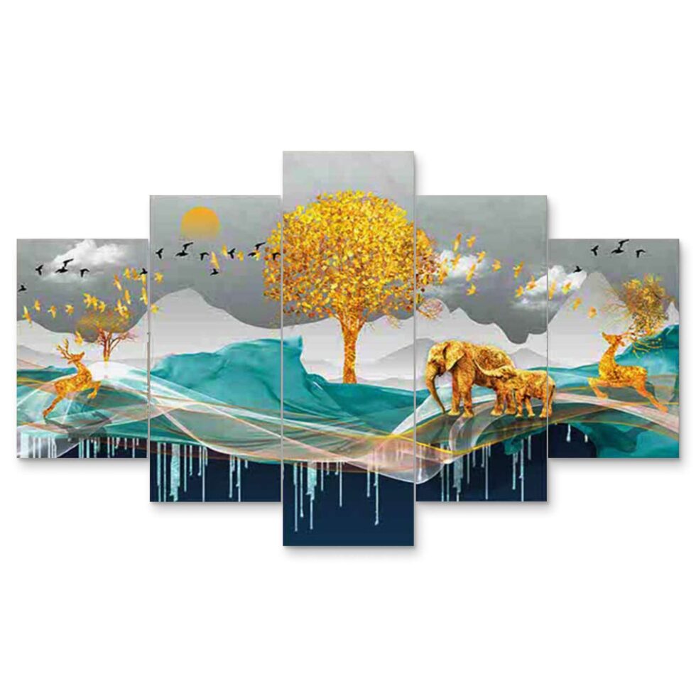 Nature Set of Five 3D Framed Paintings for Wall Decoration – Ideal for Home, Living Room, and Bedroom (75 x 43 CM)